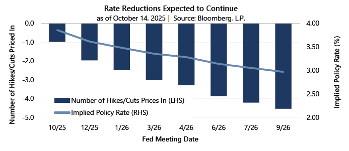 On September 17, 2025 the U.S. Federal Reserve (the Fed) lowered the Federal Funds rate by 25 basis points to 4.25%. The S&P 500® Index finished that day at 6,600.35, nearly unchanged from the prior close, and would go on to make new all-time highs in October. Meanwhile, implied volatility as measured by the Cboe® Volatility Index (the VIX®) closed September 17 at 15.72 – well below the since 1990 average of 19.46 – before climbing higher in October due in part to the ongoing U.S. government shutdown and revised trade tensions with China.