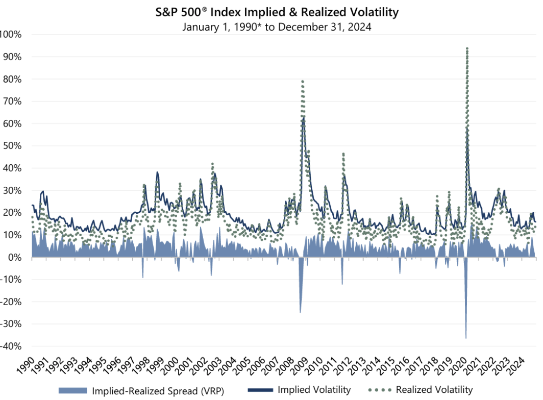 The frequent over-pricing of implied volatility relative to realized volatility represents a risk premium that creates the potential for option-writing strategies to enhance risk-adjusted return relative to broad equity market indexes. Our strategic use of index options can convert this implied equity market volatility into cash flow while maintaining equity market correlation. This consistent risk profile has the potential for less downside exposure and smaller short-term fluctuations than the underlying equity index. These characteristics may be useful to investors seeking new solutions to the ever-more challenging investment objective of adding short-term consistency to the pursuit of long-term portfolio returns.